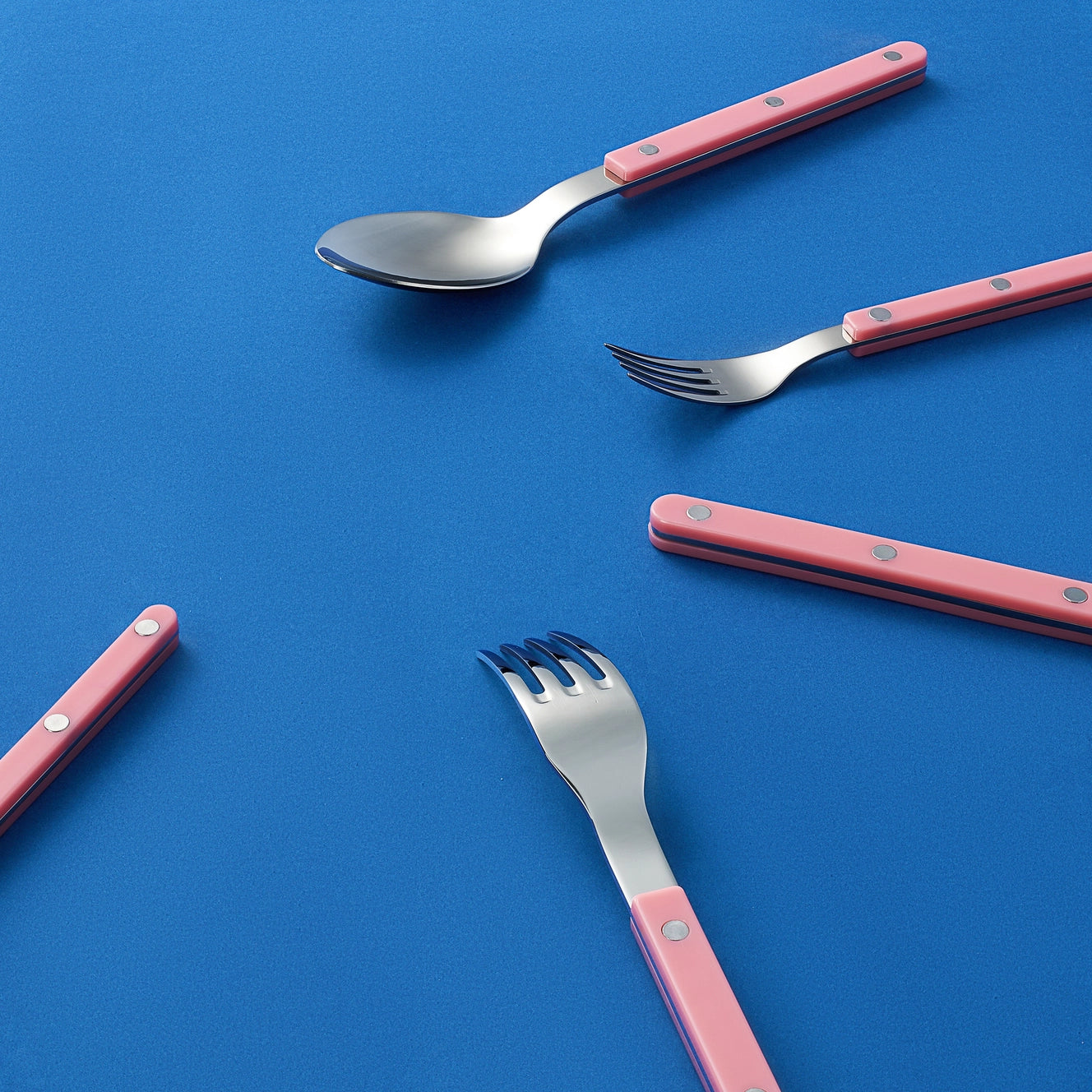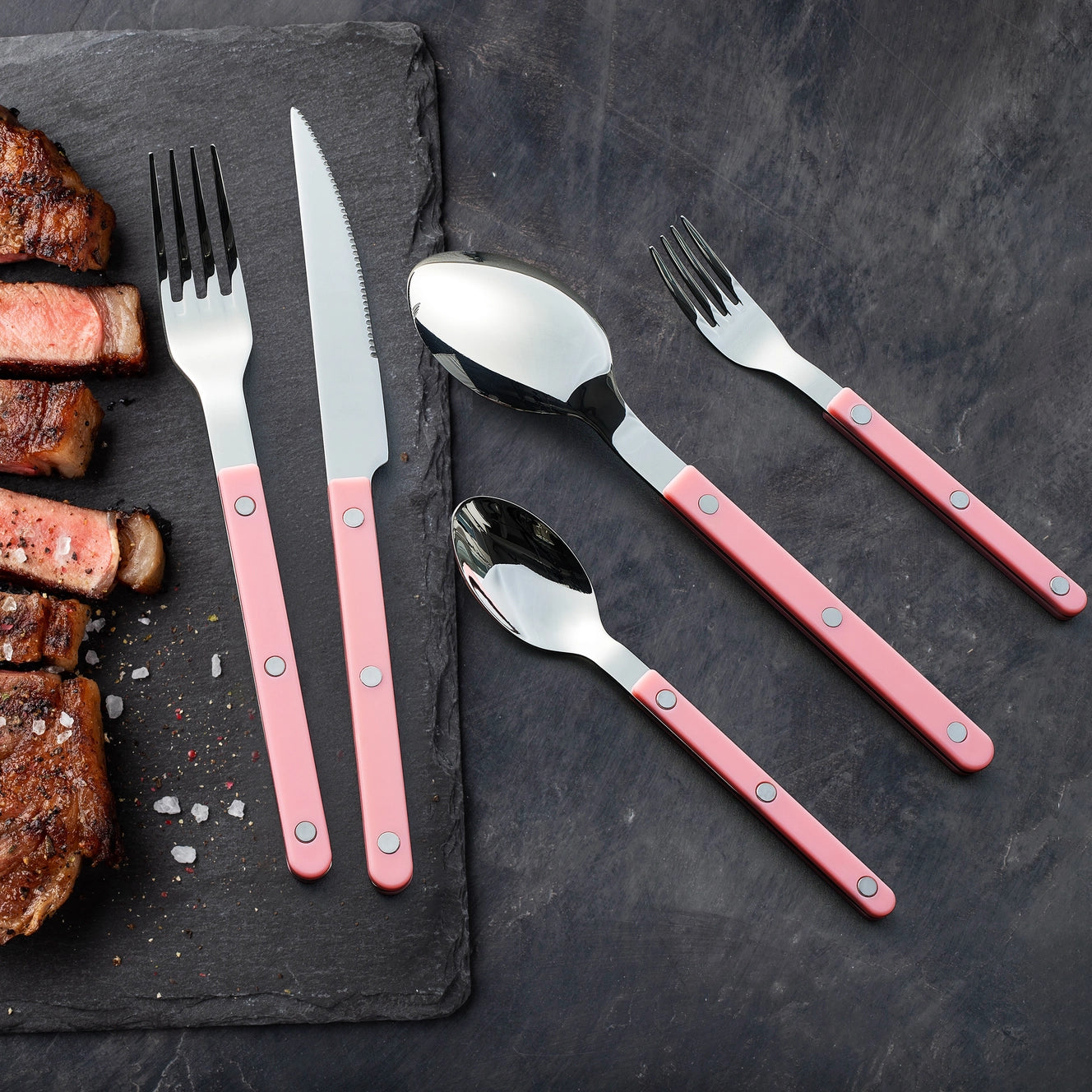 Made from high-quality 18/8 stainless steel that resists rust, bending, and staining. Perfect for long-term use in any kitchen. The unique sabre-style handles give this cutlery set a sleek, elegant look that stands out on any dining table. Includes 5 durable and stylish cutlery pieces (4 of each). They are great for family dinners, guests, or daily meals. Designed with smooth edges and a balanced weight to ensure a comfortable grip while eating.