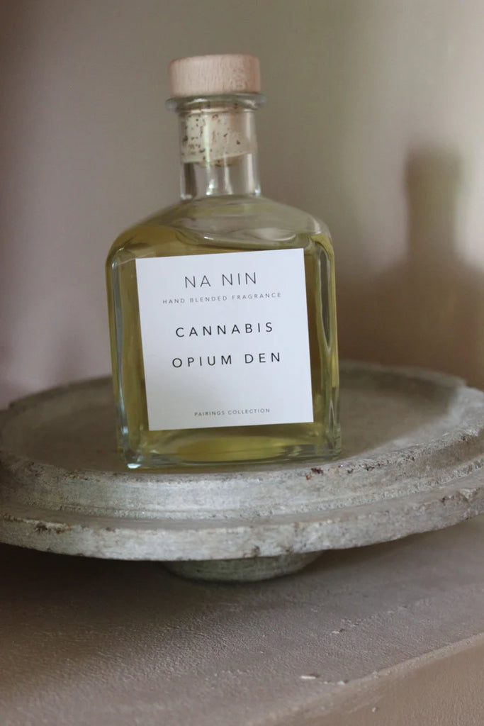 Cannabis / Opium Den is bright and intoxicating, with vibrant green notes evoking the scent of fresh cannabis leaves.