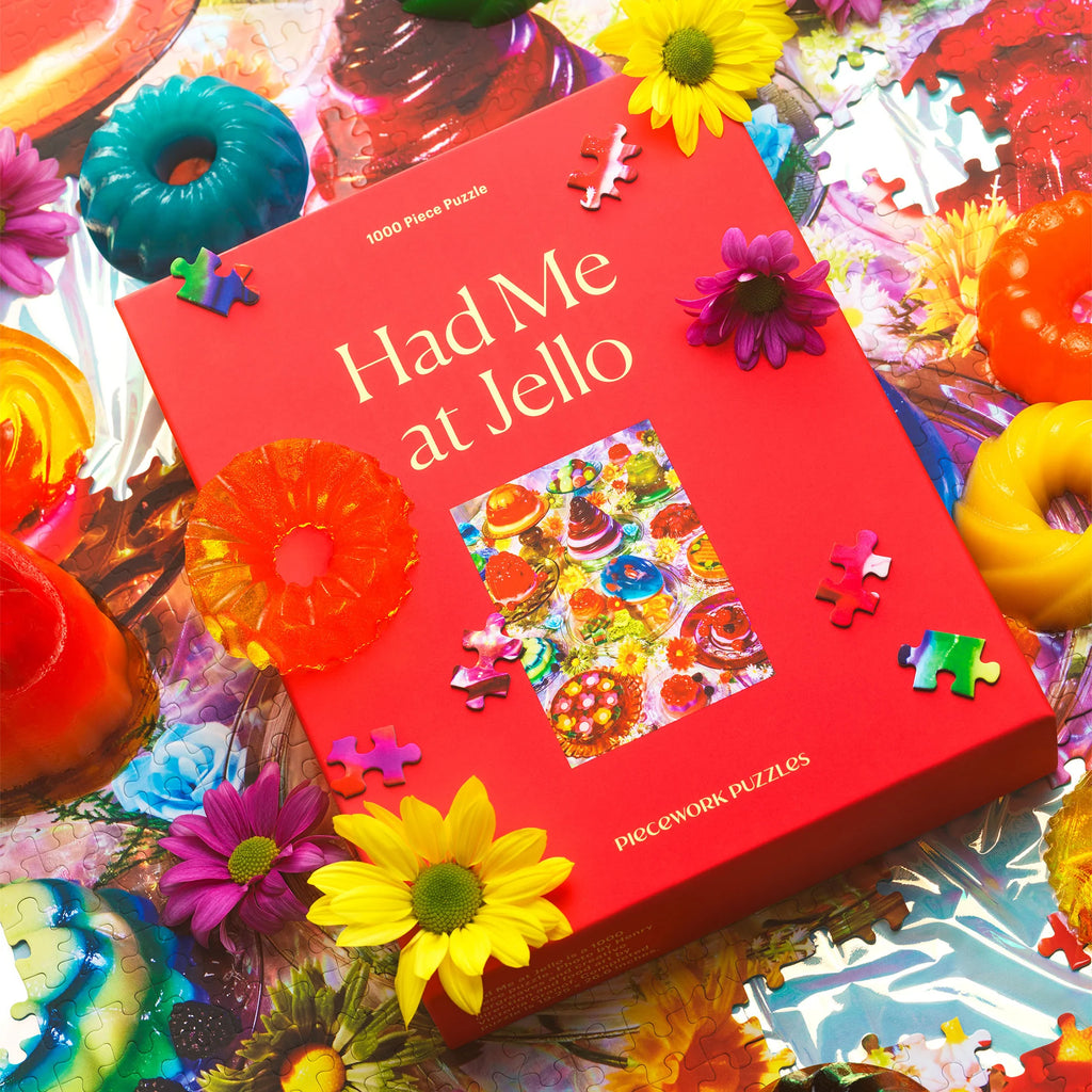 Jelly molds, mid-century magic, and a little bit of wobble—this puzzle is a technicolor tribute to gelatin’s most glamorous era. Had Me at Jello is a retro dreamscape, where jelly towers glisten and color reigns supreme. A playful collaboration with Victoria Granof and Henry Hargreaves, this puzzle is pure wiggly joy.