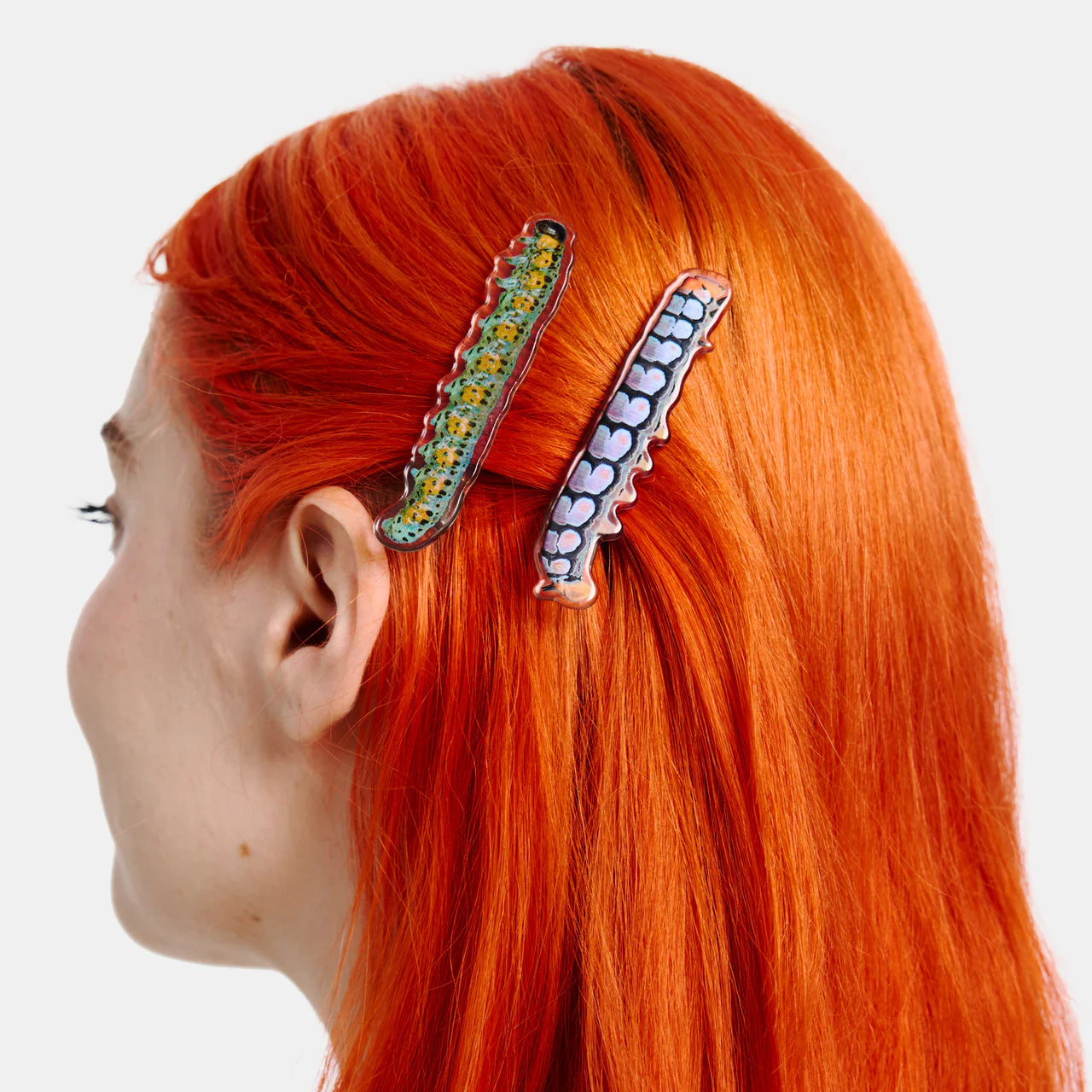 A perfect pair of alligator style clips. Small metal teeth provide a strong hold with no snag. Ideal for all hair types and lengths. Great for taming bangs and flyaways.
