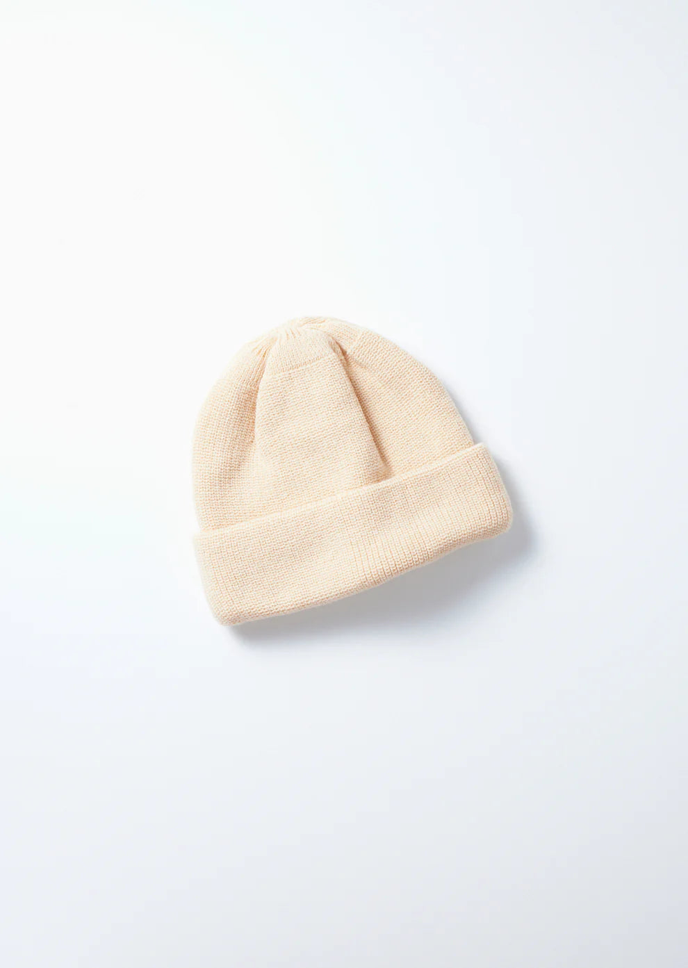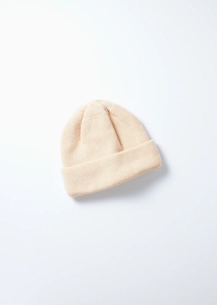 This watch cap is made of a blend of lightweight, highly heat-retaining acrylic and wool yarn. The cap depth is just right for easy wearing, and comes with simple design with 1x1 ribs.
