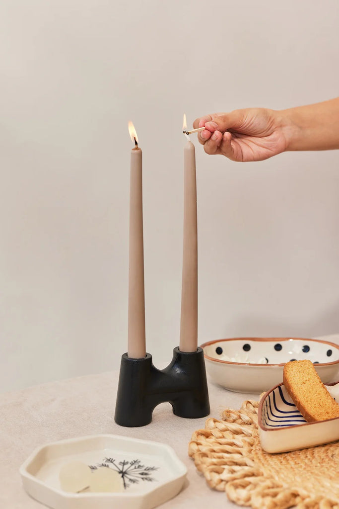 Black Concrete H Candle Holder