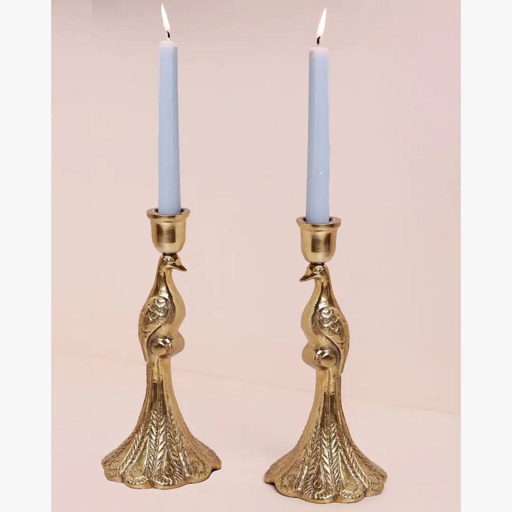 Peacock Metal Candle Holder Set