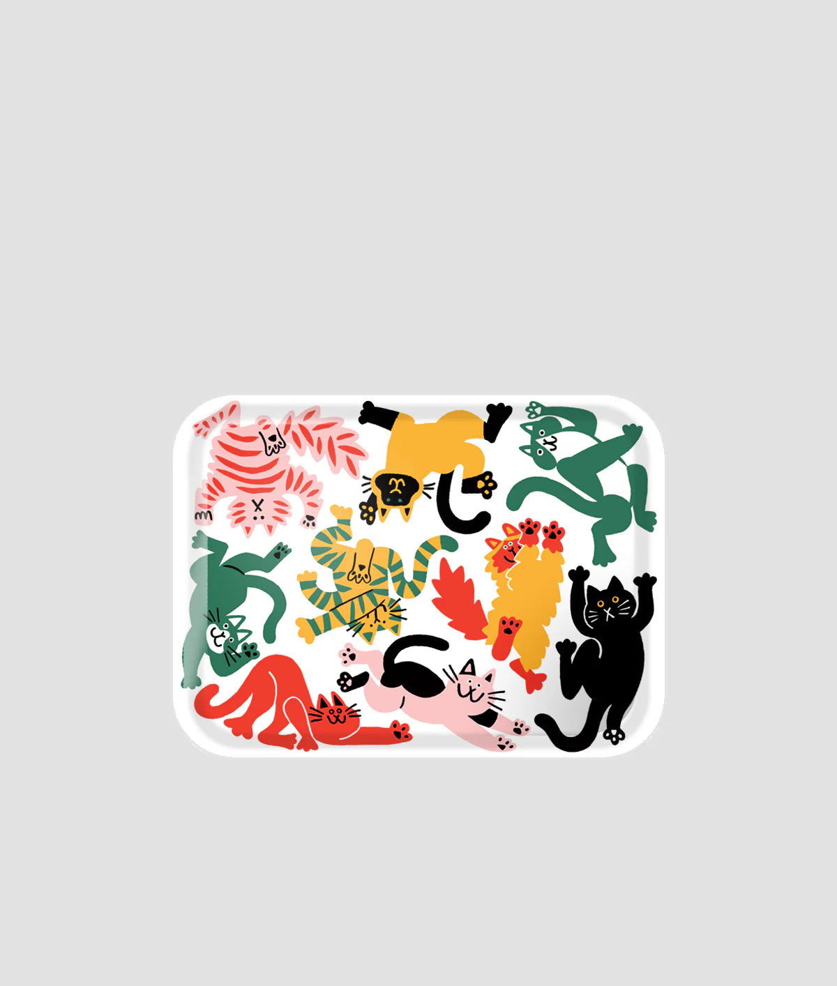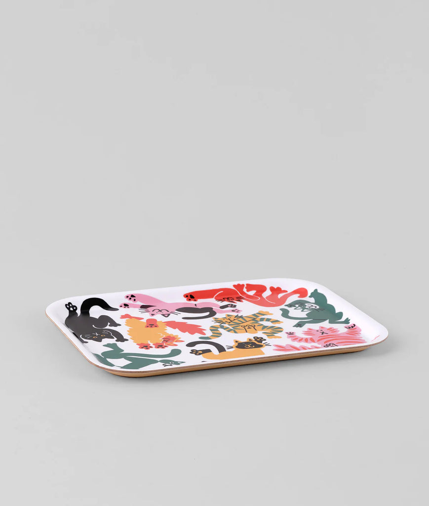 This mini art tray featuring a crowd of cute kitties is full of energy and fun. Designed in a humorous and light-hearted style, this colourful art tray with its bright primary hues is sure to brighten up any coffee table.