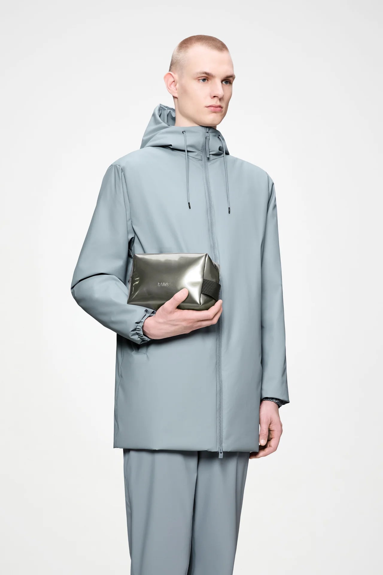 Wash Bag Small is cut in Rains’ signature waterproof PU fabric, engineered for carrying strength, durability, and a smooth feel.