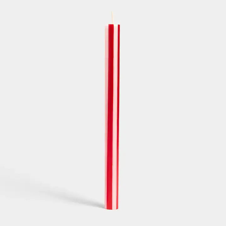 These pillar candles combine bright colors to make festive Christmas stripes with a glossy finish. The taper candles come in a set of 2 :)