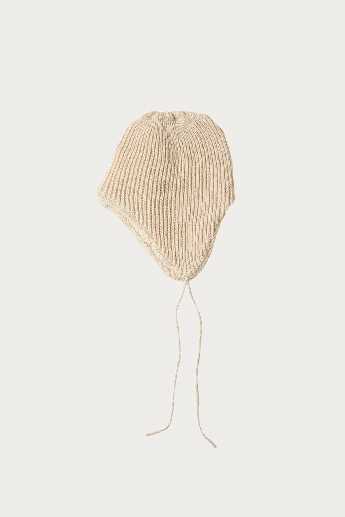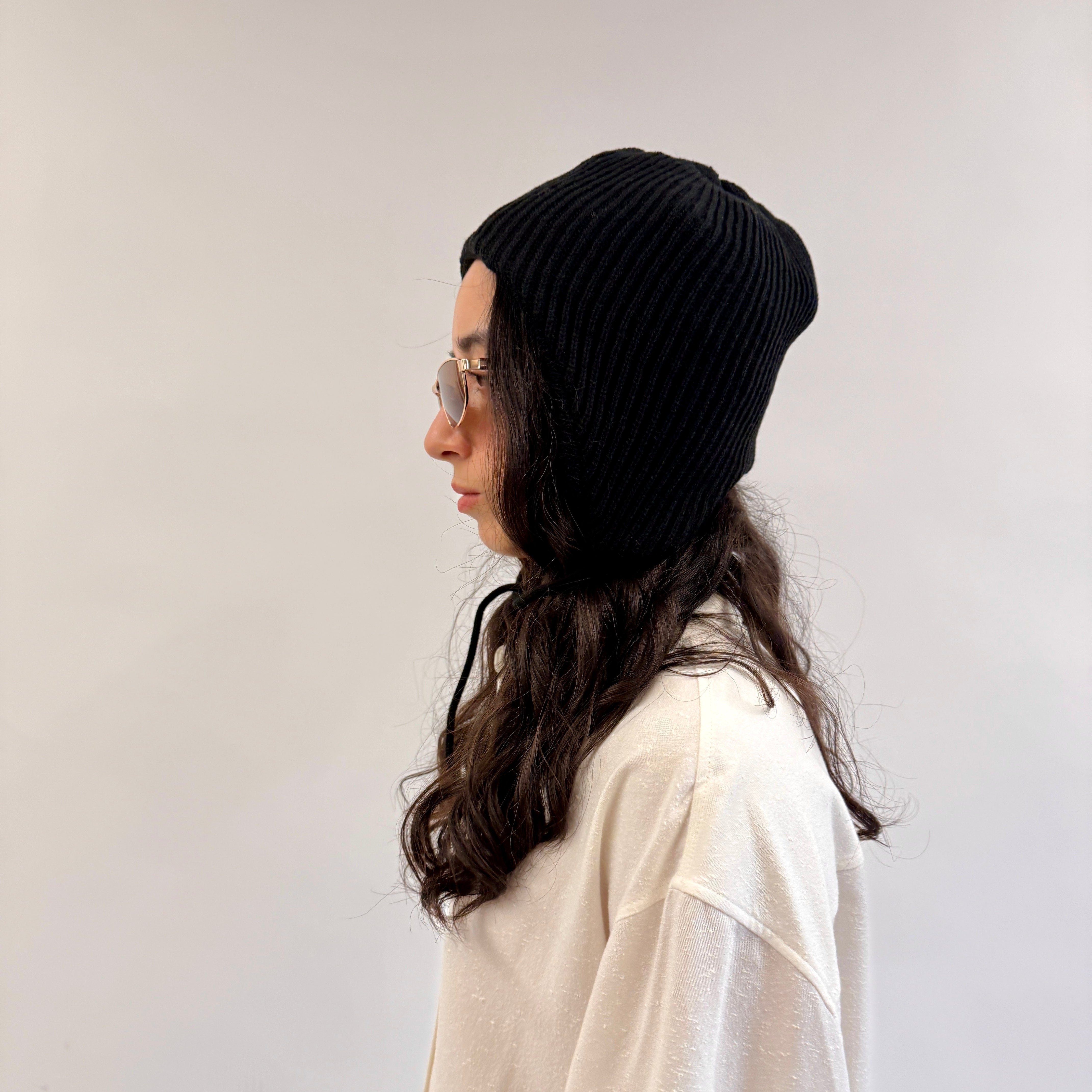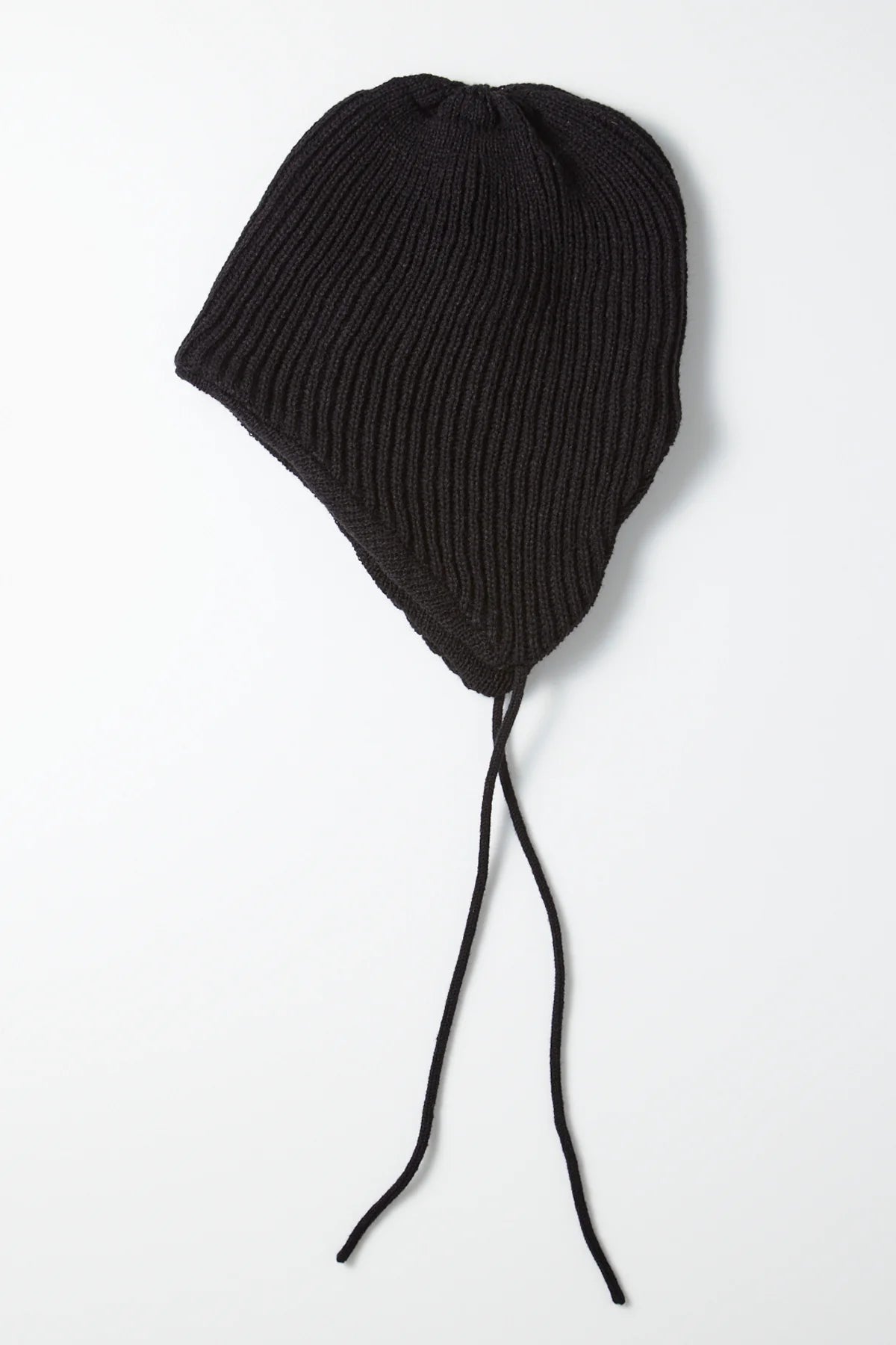 Wool blend knit beanie from ROTOTO with ear flaps and strings for adjustment.
