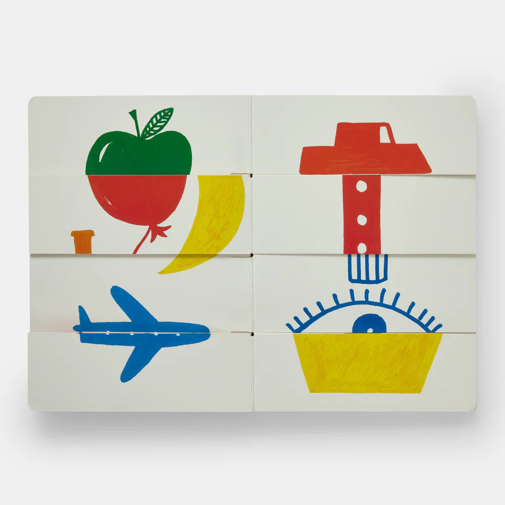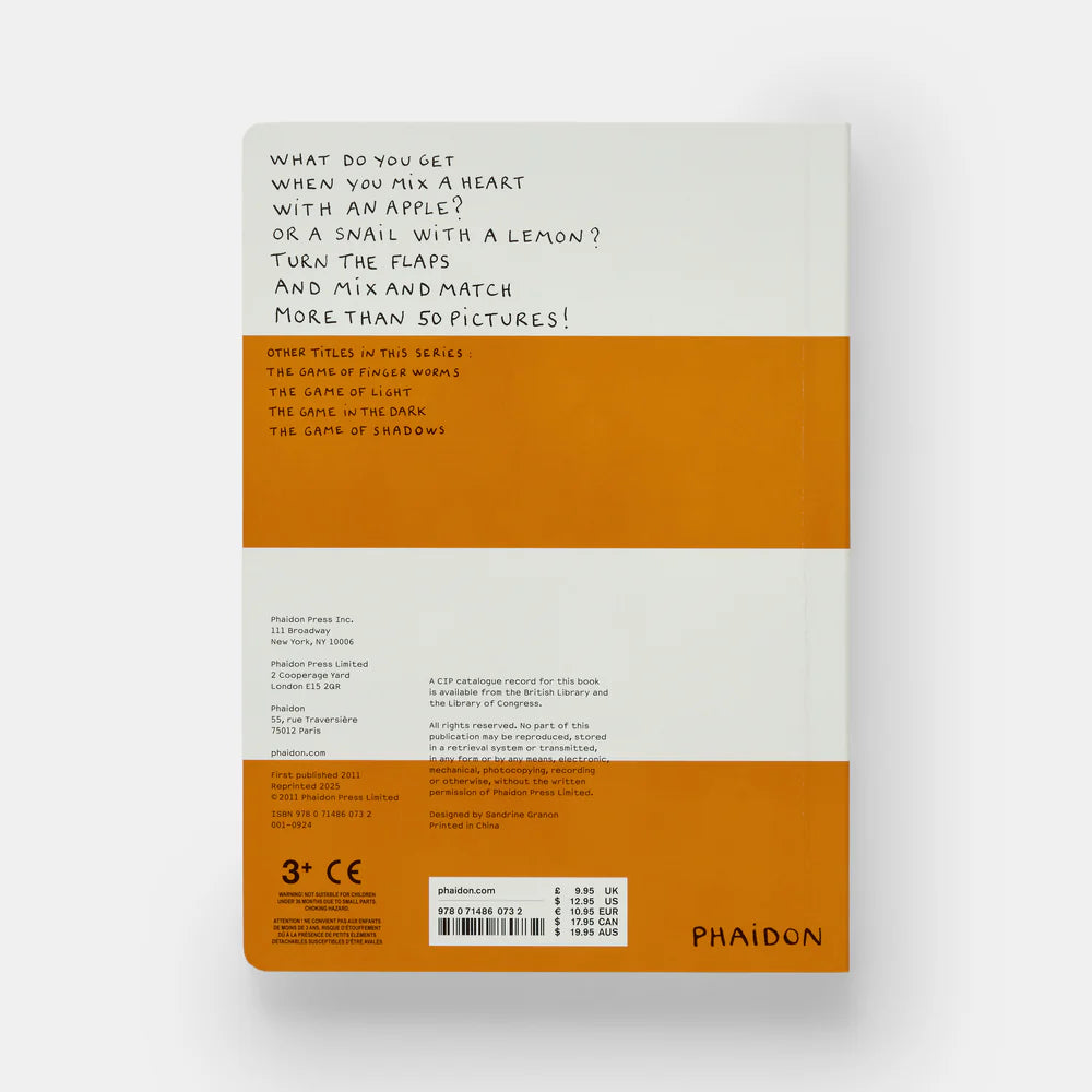 This hands-on game has more than 50 different pictures – use the flaps to discover what you get when you mix a heart with an apple or a snail with a lemon!