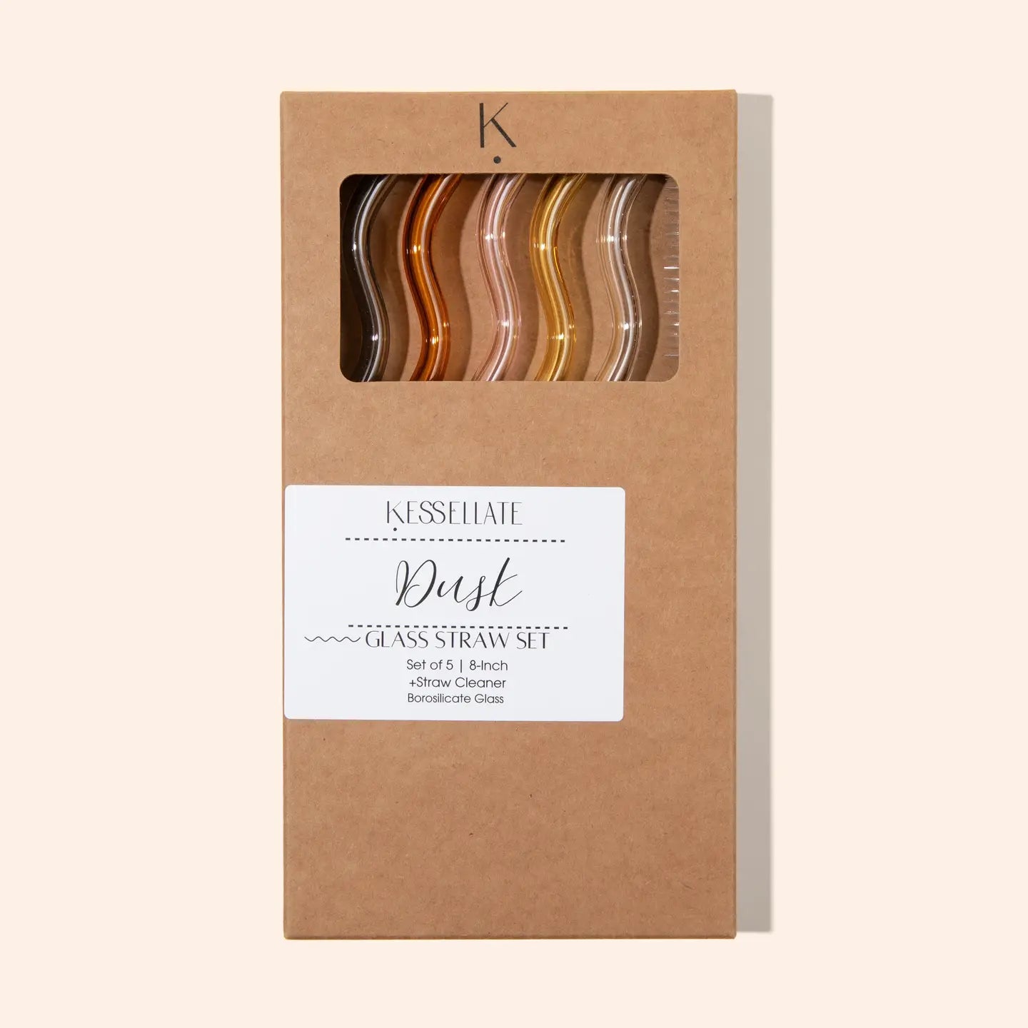 Each set includes five 8-inch glass straws, along with a cleaning brush