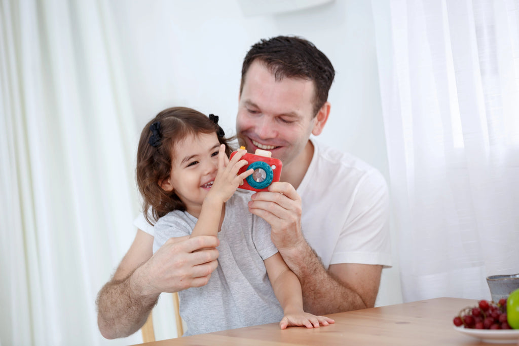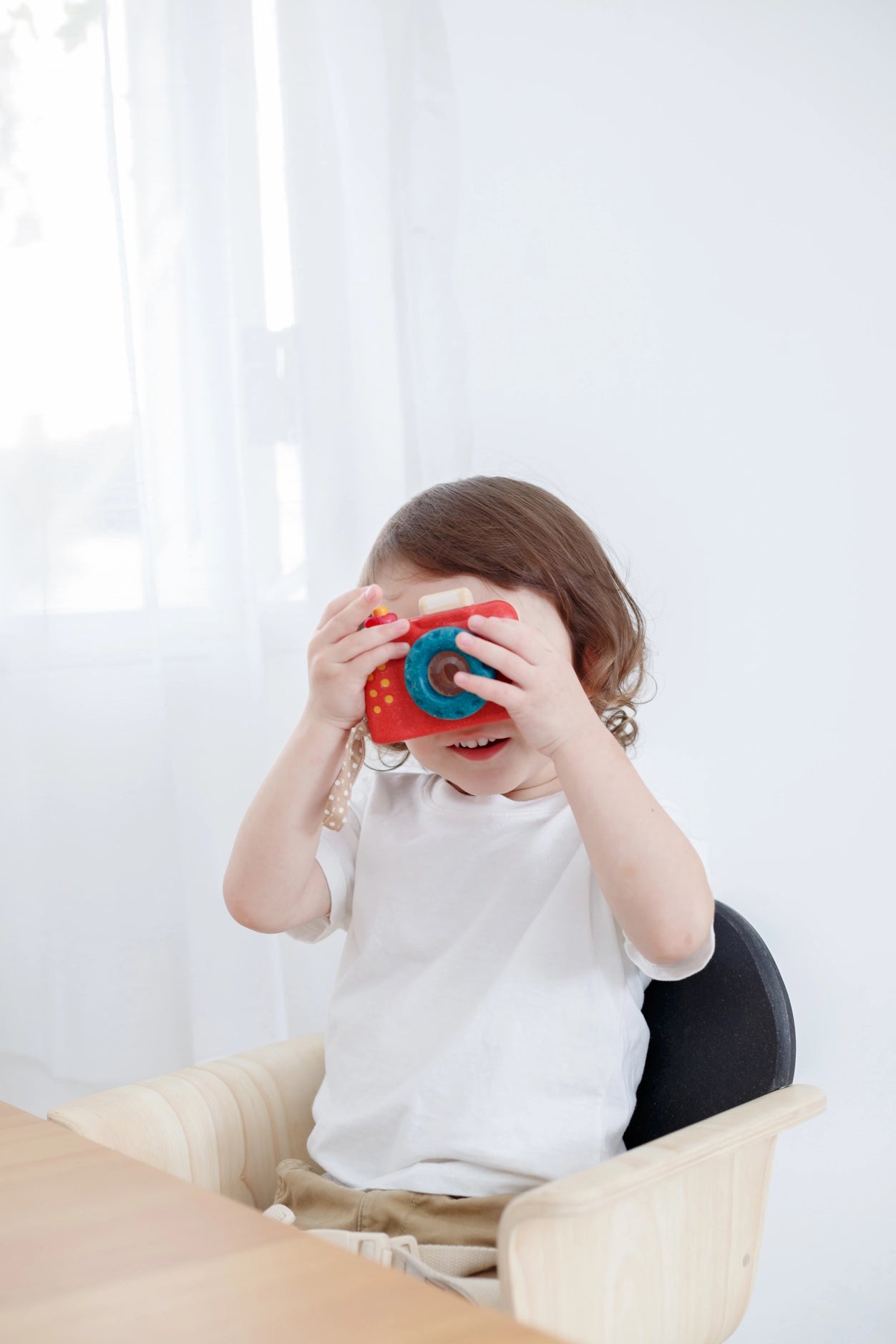 Get picture perfect views of your surroundings with this PlanToys camera. Point, focus, and click the camera and see the different images through the kaleidoscope lens!
