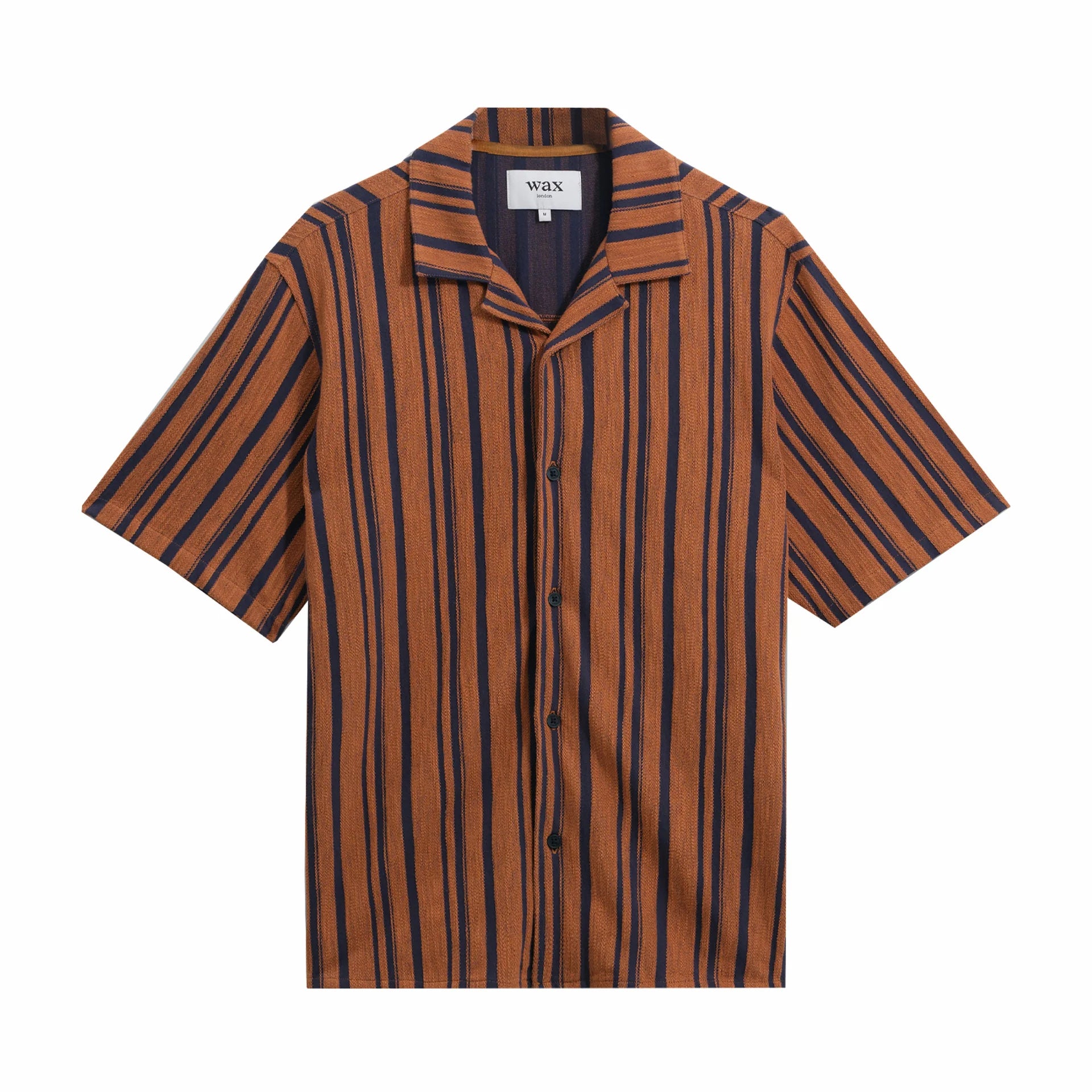 Crafted from reverse-loop terry cloth, this shirt showcases a soft, towel-like texture on the outside for a relaxed, tactile vibe. Its bold striped design blends rich rust and navy tones, evoking a vintage feel perfect for urban adventures or seaside escapes. Featuring Wax London’s classic Didcot cut, it offers a slightly tapered fit, a traditional revere collar, and a straight hem—striking a cool balance between polished and casual. Made from breathable 100% cotton terry, it keeps you comfortable while standing out with its unique texture.