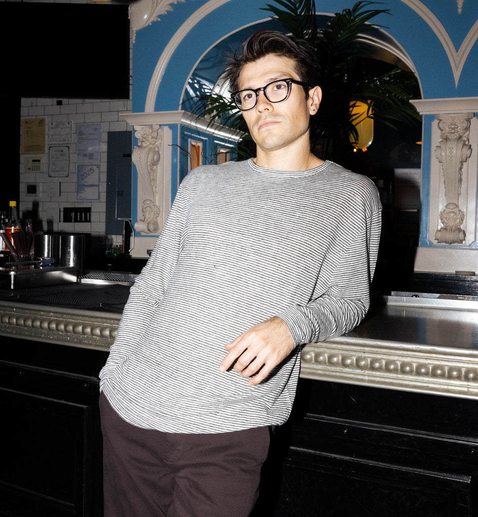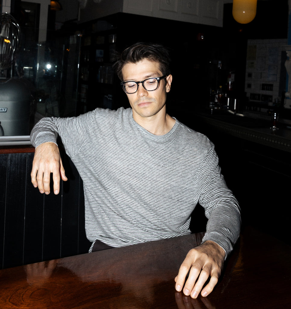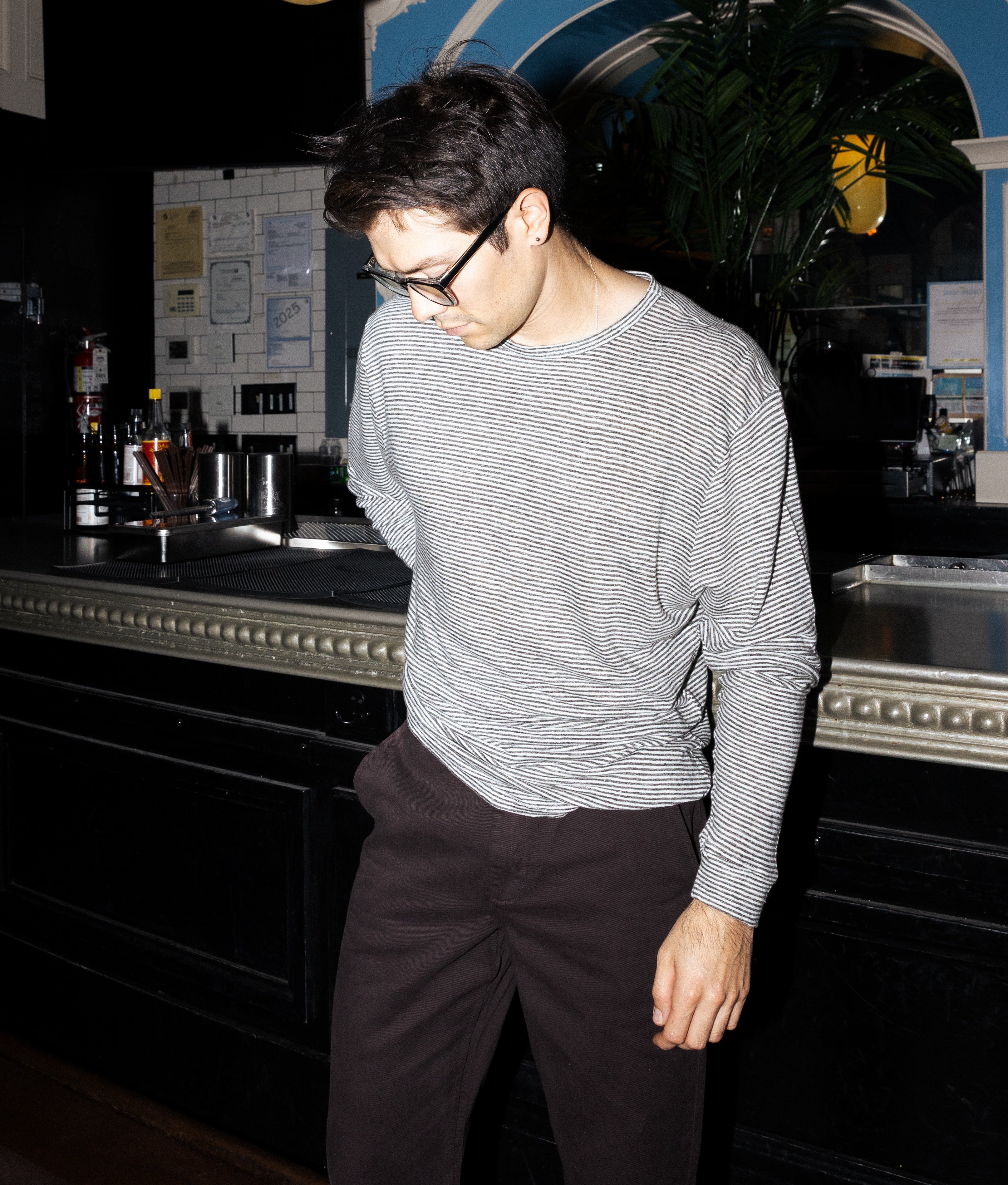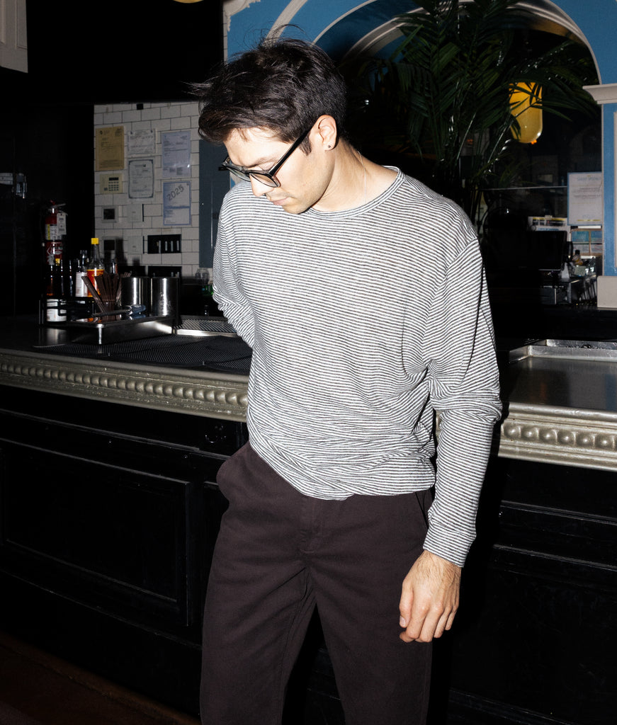A yarn-dye striped long-sleeved t-shirt made with sustainably grown French linen, knit in Portugal and washed with biodegradable softeners.