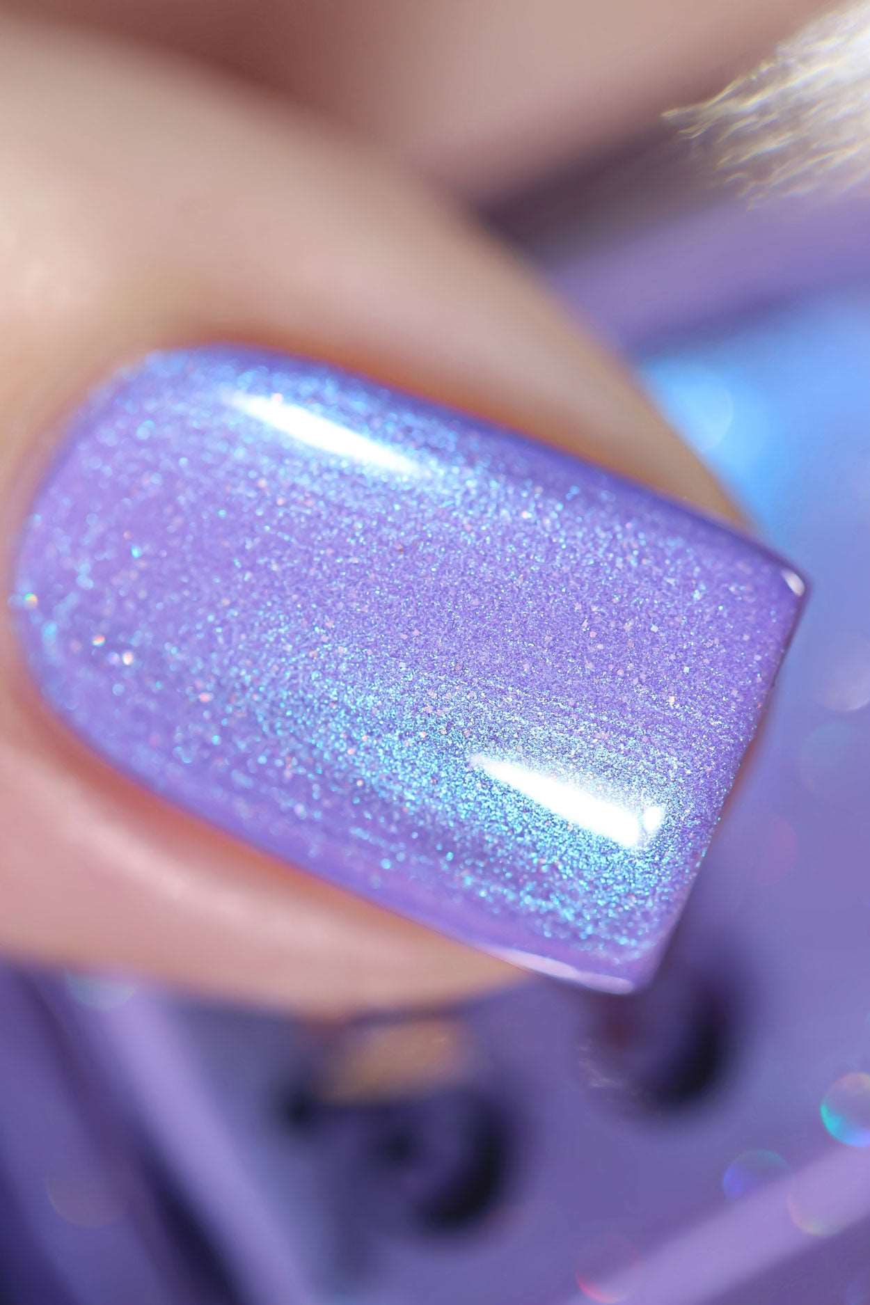 Isle of Capri is a lavender purple nail polish with teal shimmer and delicate holographic sparkle. Our shimmer polishes are packed with glimmering pigments which give them a unique multidimensional finish, unlike any other.