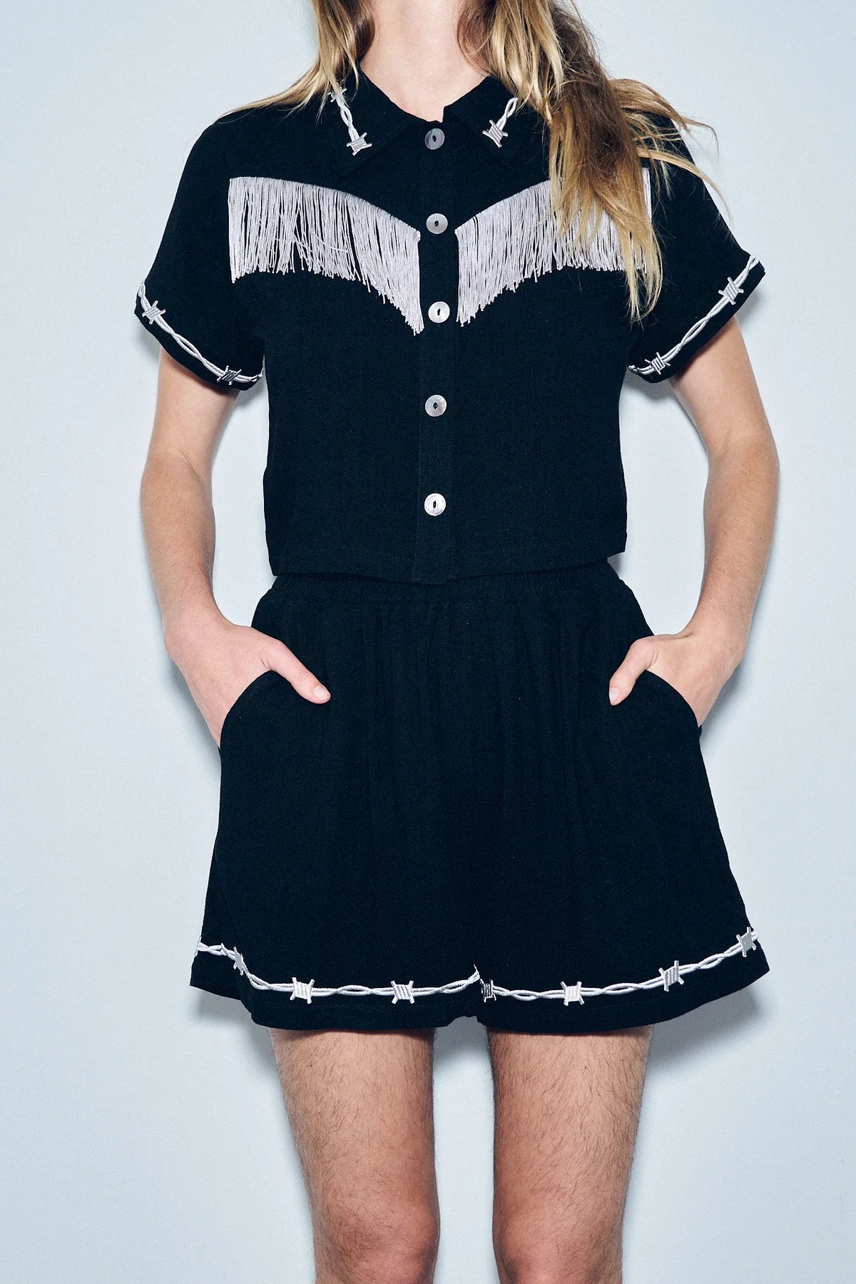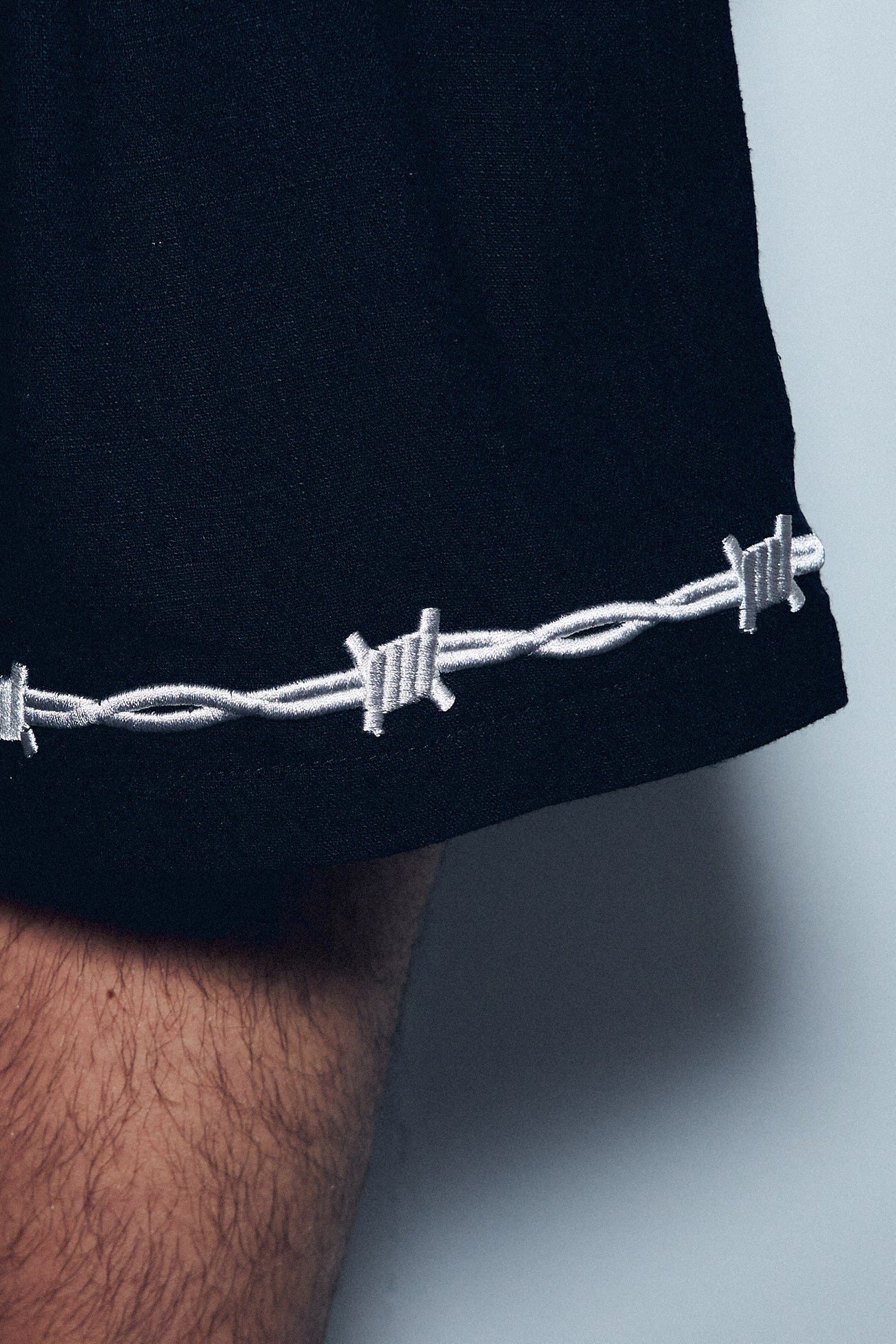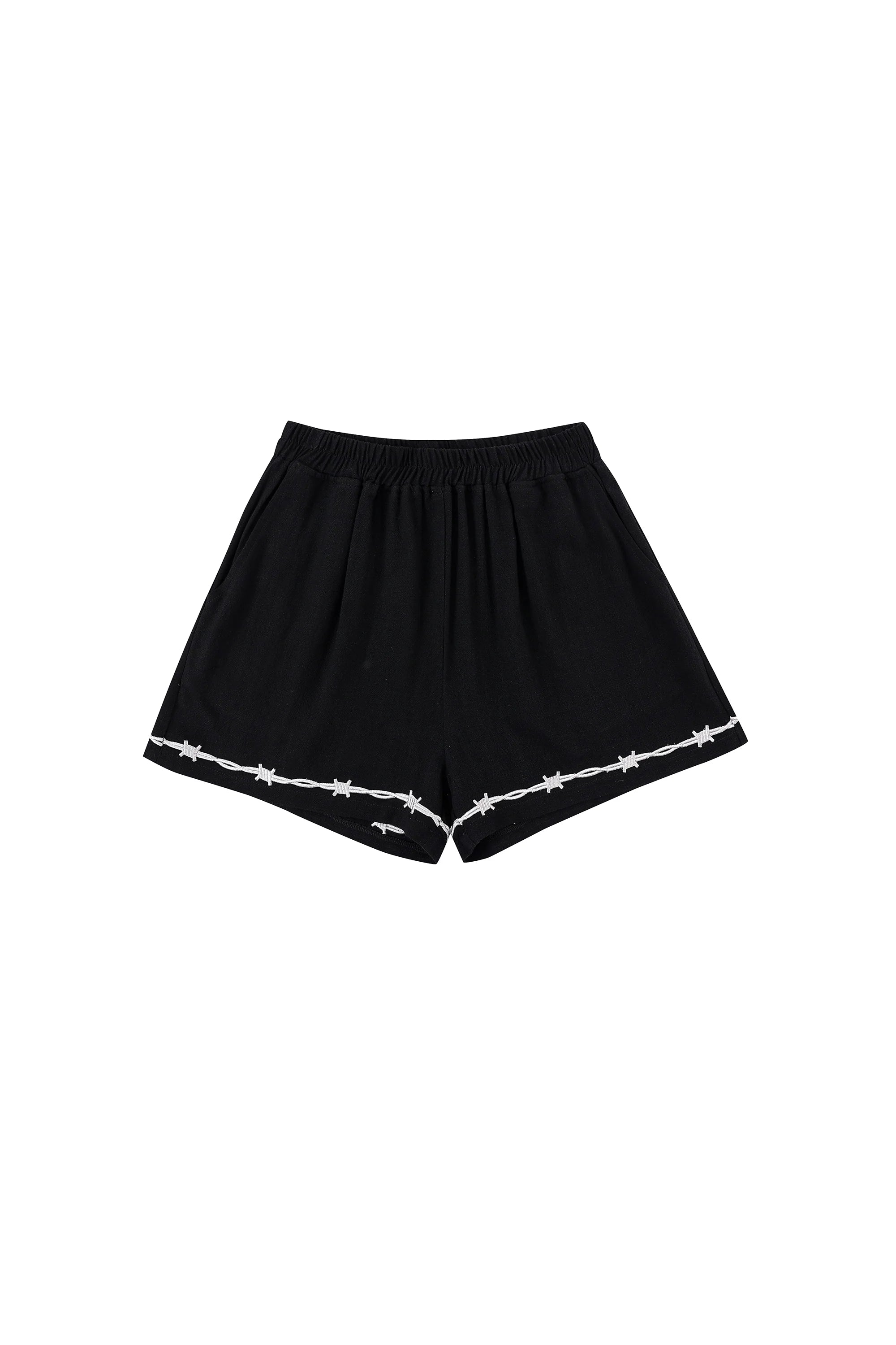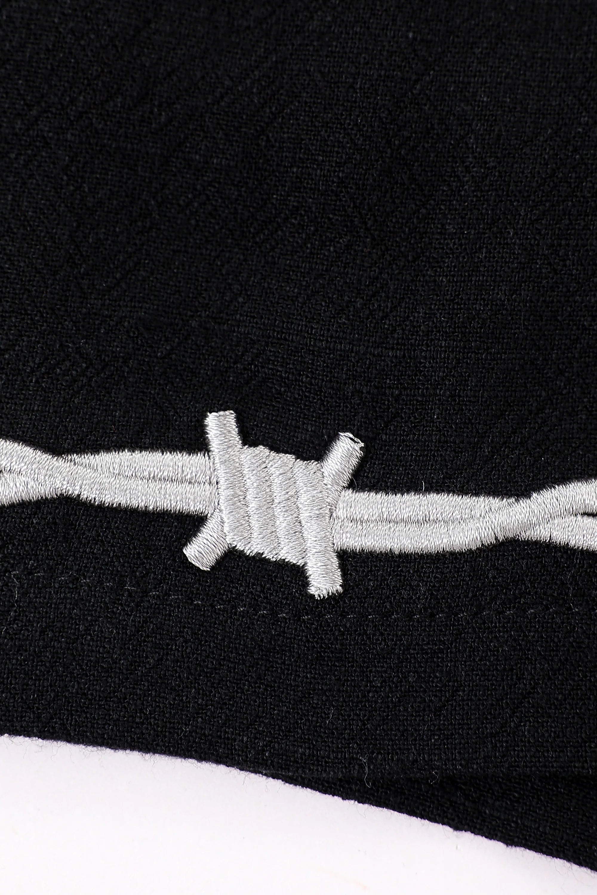 -soft linen blend with embroidered barbed wire