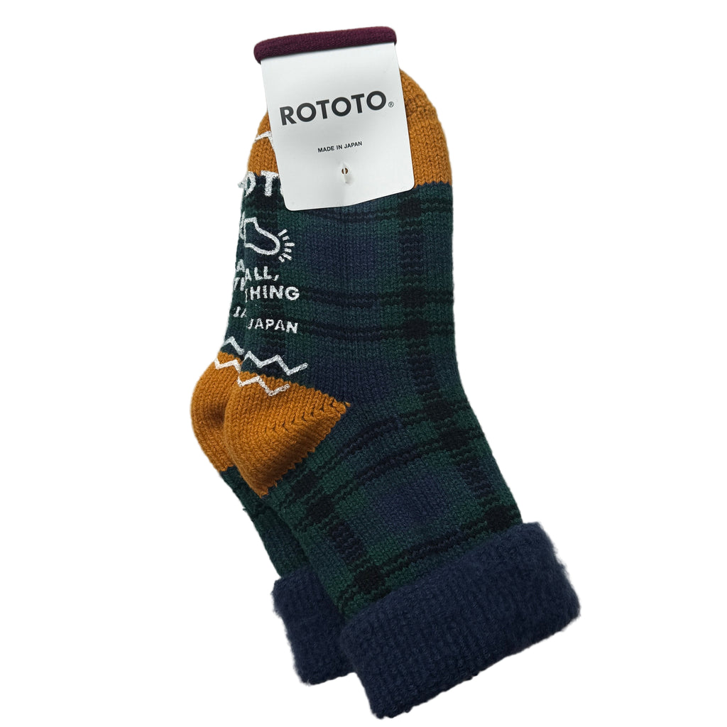 Navy Green Check Comfy Room Socks