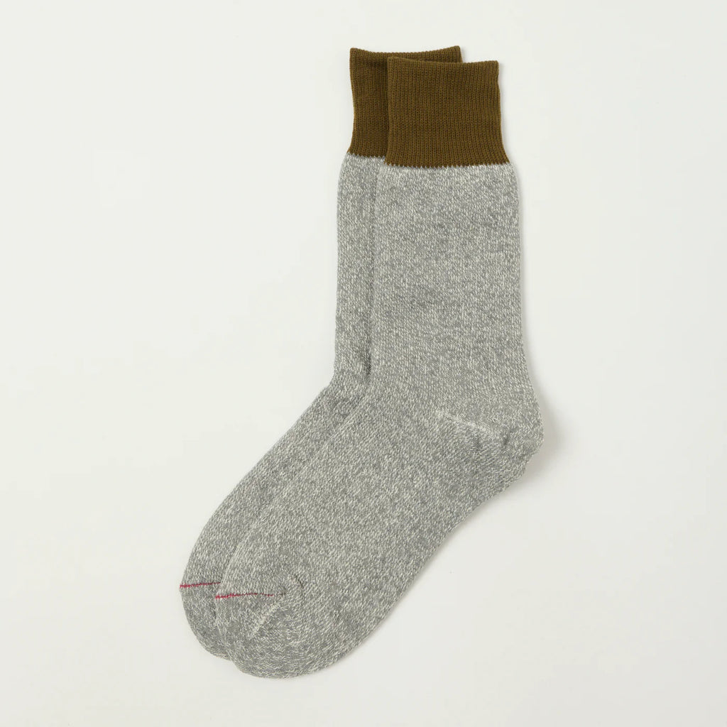 Olive Gray Double Face Crew Silk Cotton Socks