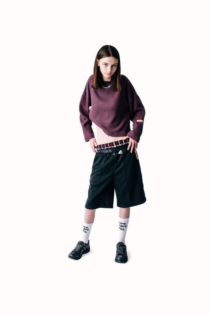 Slightly cropped boxy fit with wide sleeves and dropped shoulders.