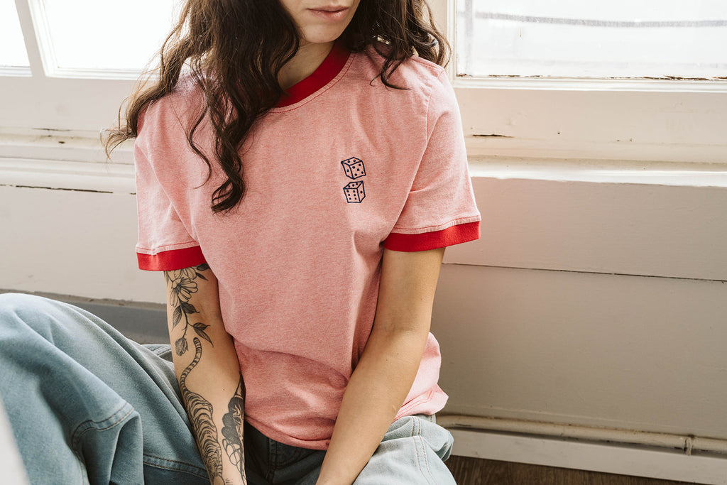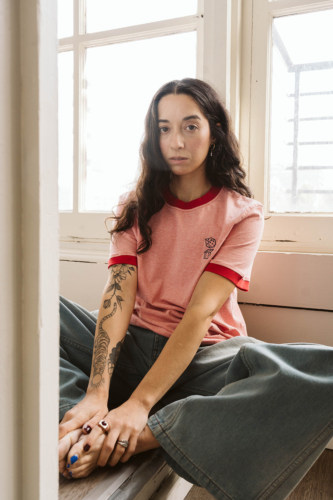 Red t-shirt. Designed with slightly loose fit and stretchy fabric. Fits true to size, take your normal size. Made in Spain.