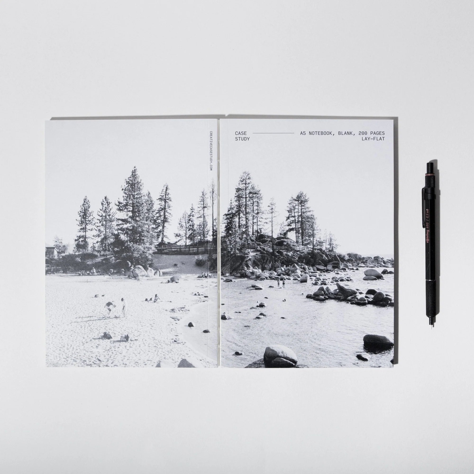 A thoughtfully designed layflat notebook with blank pages that are great for journaling, sketching, note-taking, or brainstorming your next best idea.