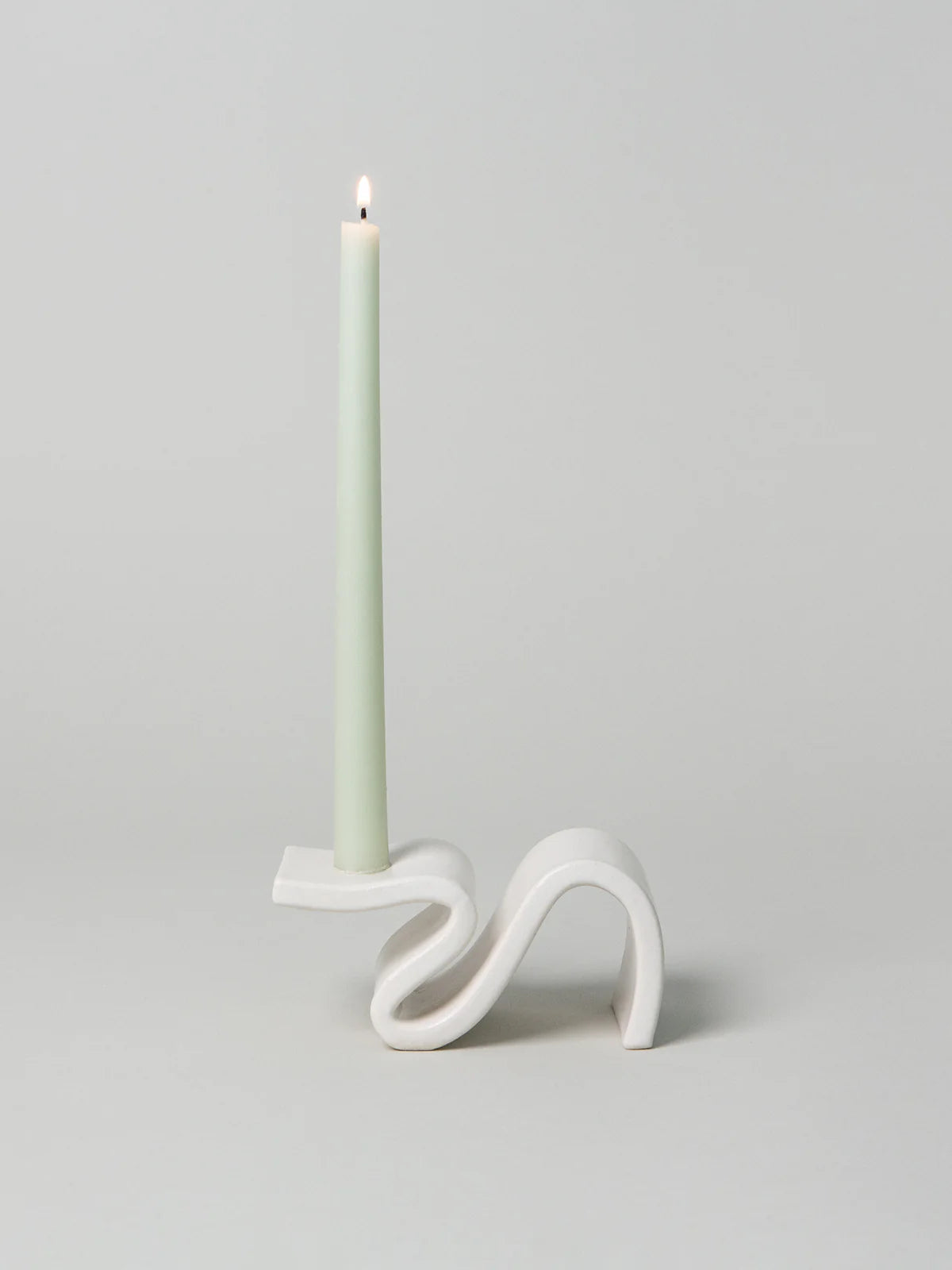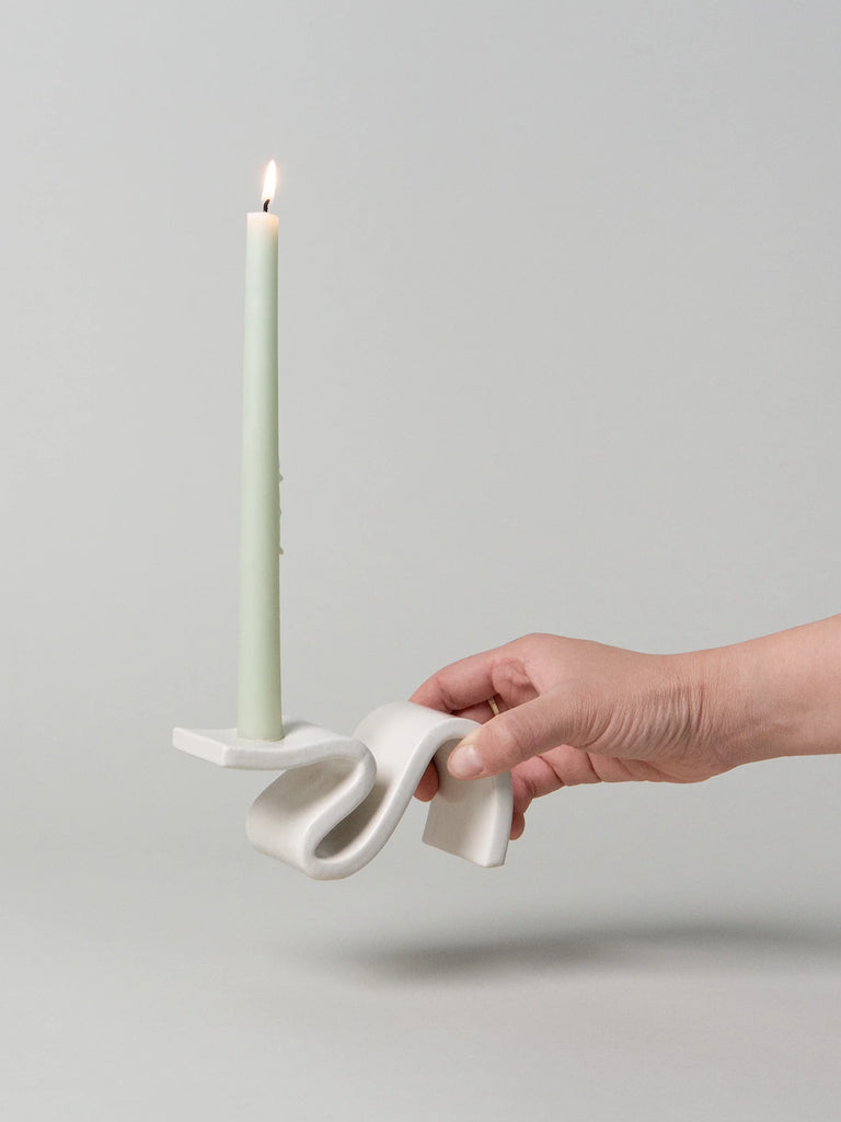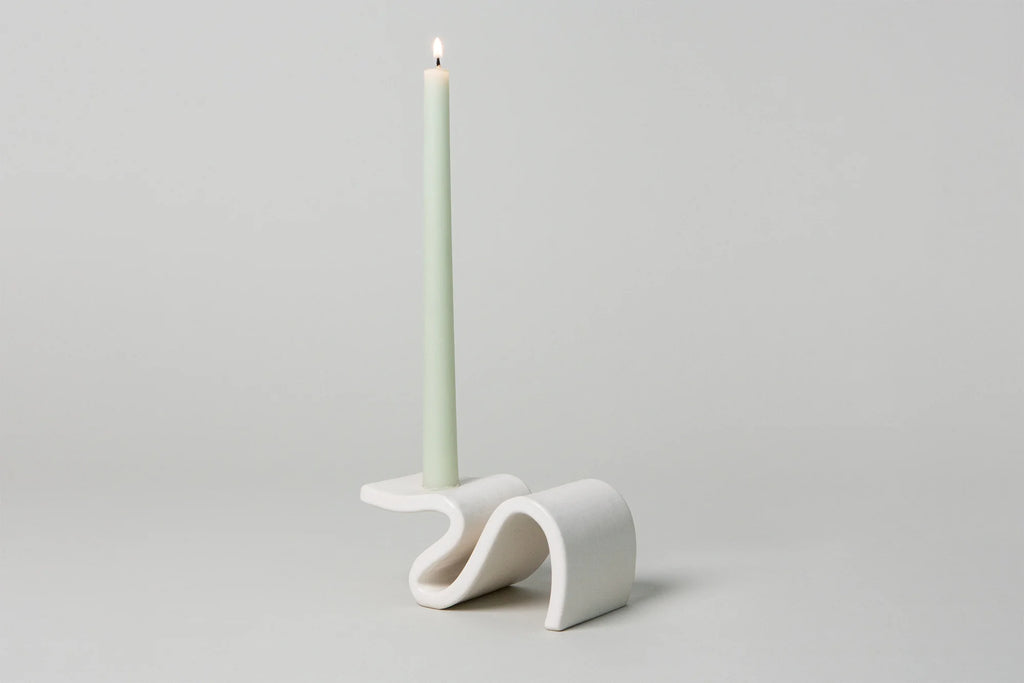 A candlestick designed to evoke the romance of a foregone era. This unique piece combines elements of classic design with a modern twist. Its cantilevered surface pays homage to contemporary architecture, seamlessly blending tradition with innovation.