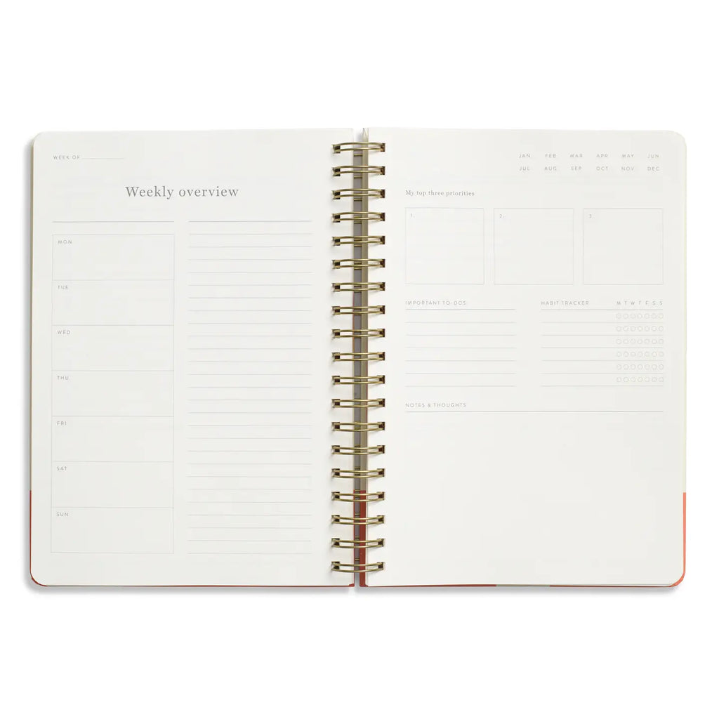 The ultimate tool for staying organized and achieving a healthy work-life balance with Papier's 16-week undated daily productivity planner. This planner provides ample space for planning daily and weekly tasks, managing to-dos, creating schedules, and tracking shopping lists. It also includes sections for goal setting, progress reviews, habit tracking, and personal reflection. With undated pages and a spiral binding for easy, lay-flat pages, your customers can start using it at any time, making it a flexible solution for year-round productivity.